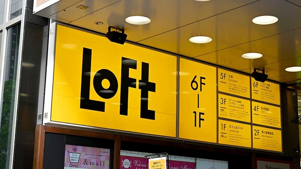 - 公共の場において店舗の看板の視認性はよいに越したことはない。銀行でも携帯キャリアでも、だいたい大手の競合はブランドカラーの被りを回避する。これは百貨店しかりだ。そこでこのロフトのロゴカラーは黄色である一方で、市場の競合とみなされる東急ハンズは緑、無印はえんじ、PLAZAは青だ。この主な目的は視認性というよりは「識別」させることにある。たとえば買い物でもらったロゴの入った袋を街で持ち歩くだけで、それ自体が広告にある。ロフトが青や緑のブランドカラーを採用しない点はそこにあると考えることもできる。